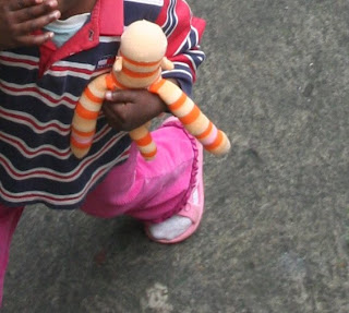 We sent a care package to Abby via a traveling family a few weeks ago. In it was a sock monkey that my daughter Hannah made for Abby. When we got the pictures back, of Abby carrying the monkey, we all cried. It connected us. Intersected our worlds. Gave us hope. Soon. In His perfect timing. We will be complete.